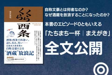 10月24日に発売となった「くらくら西条」は、日本三大酒処といわれる伏見(京都)、灘(兵庫)と並ぶ西条(広島)を舞台に、自称文豪が酒蔵を訪ね歩く“酒蔵”放浪記です。 そもそも、自称文豪は何者なのか? なぜ蔵を放浪すること … 続きを読む 【まえがき全文公開】新刊「くらくら西条」が誕生したワケ——